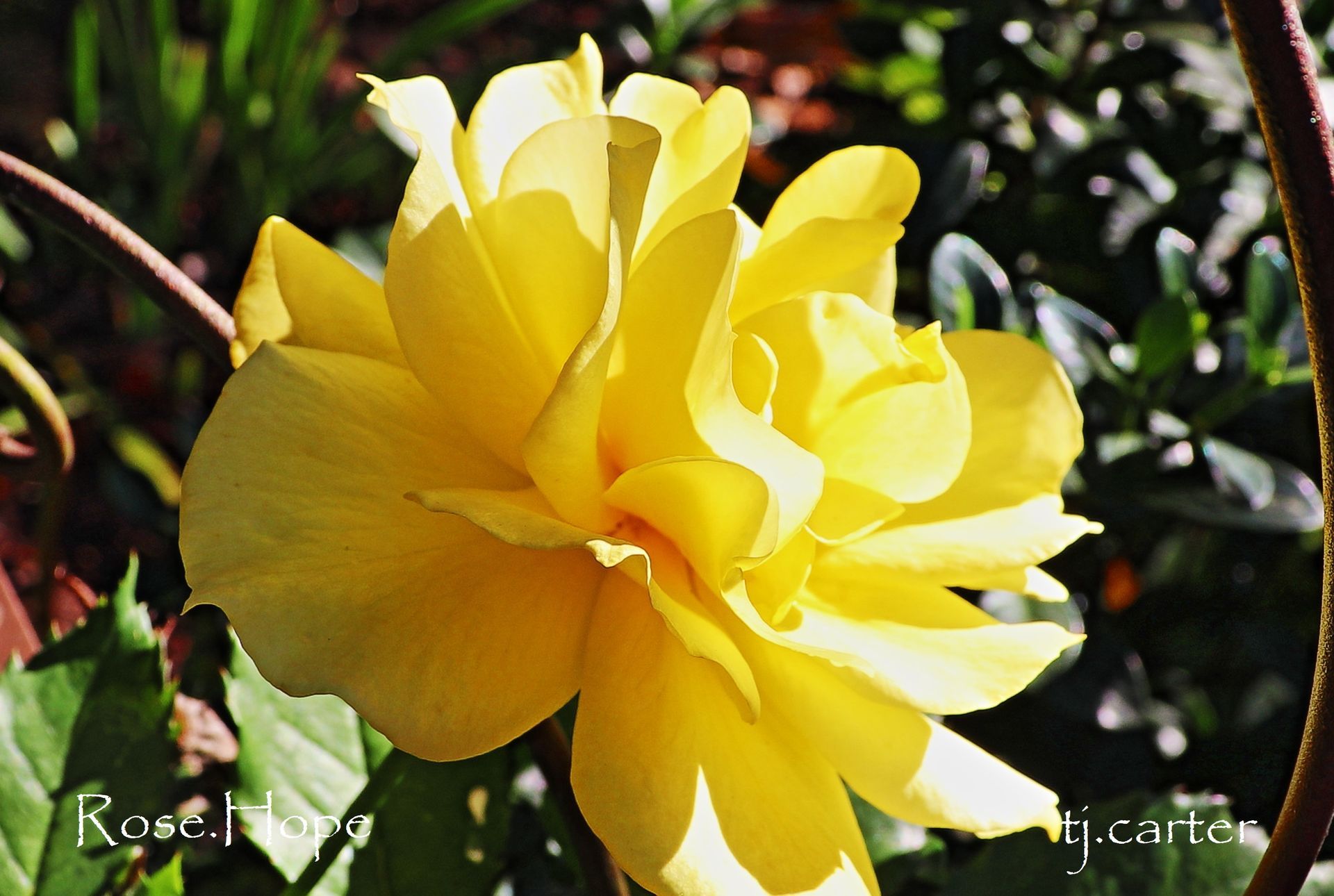 A bright yellow rose filled with sunlight greeted me.